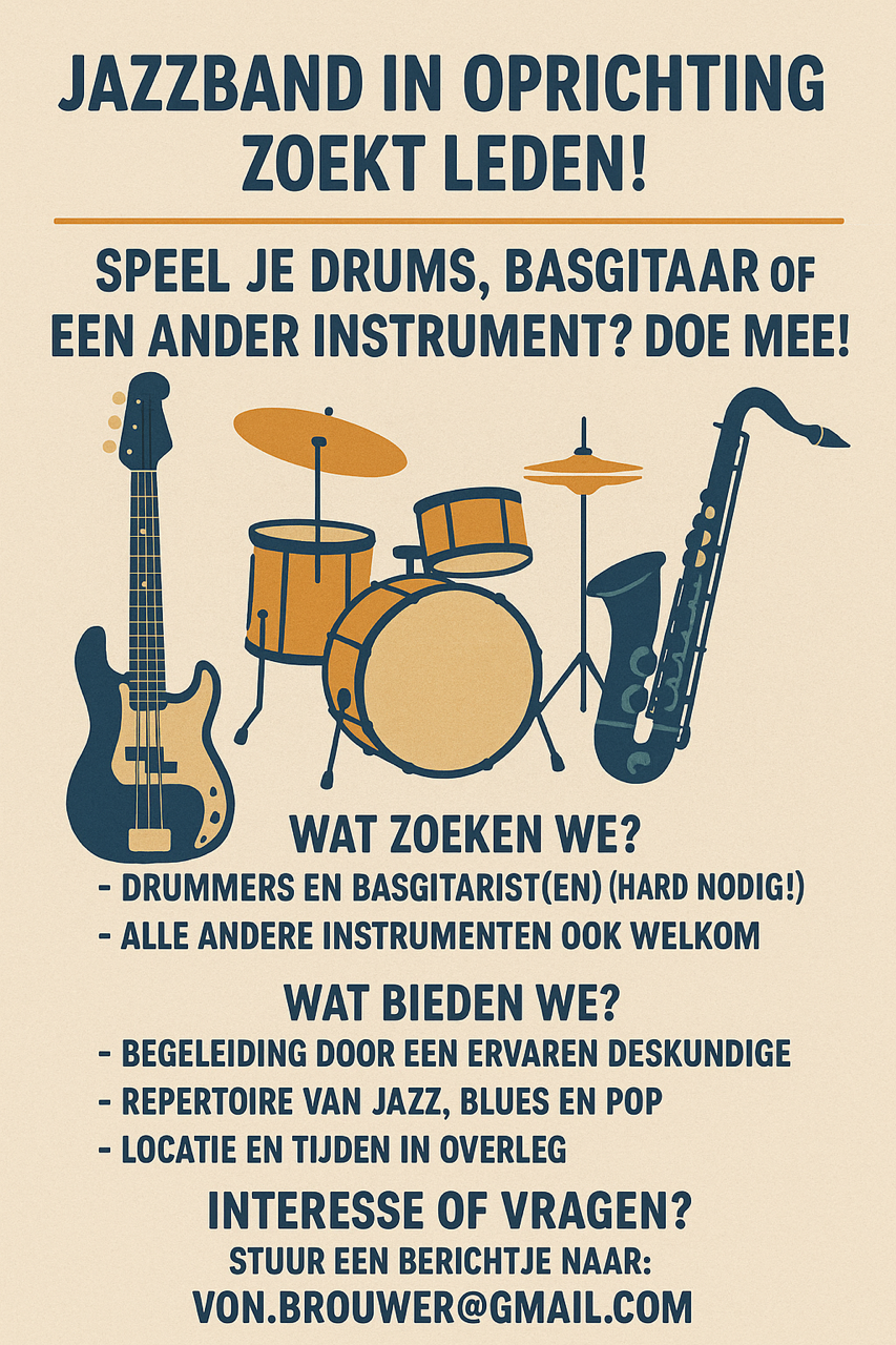 Goedendag, Ik ben Jim Hillebrand, woon in de Ranonkelstraat. Ik speel momentel percussie bij de Rockodonts. Van oorsprong ben ik drummer en zou graag weer in een bluesband willen spelen.