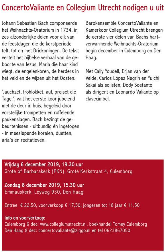 Het Weihnachtsoratorium, een meesterwerk van Bach, in Den Haag en Culemborg.